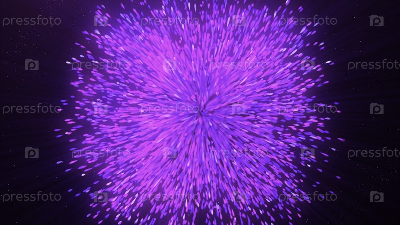 Магическая розовая анимация со сферой частиц и лучей, уменьшающейся. Движение. Частицы движутся к центру экрана