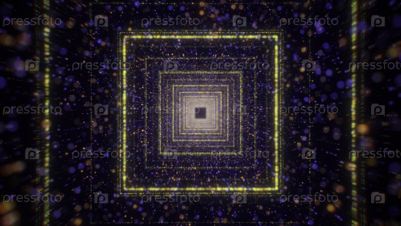 Анимация огромных геометрических форм на синем фоне.Движение.Большие квадраты рядом с которыми передвигаются маленькие блестящие огни