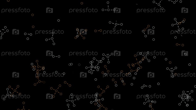 Абстрактные химические формулы, состоящие из бензольных колец на черном фоне, бесшовная петля. Анимация. Научный шаблон с появляющимися и летающими формулами