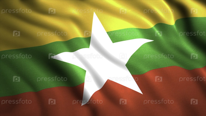 Флаг Мьянмы размахивает 3D-анимацией. движение. символ Мьянмы, национальный трехцветный флаг с белой звездой