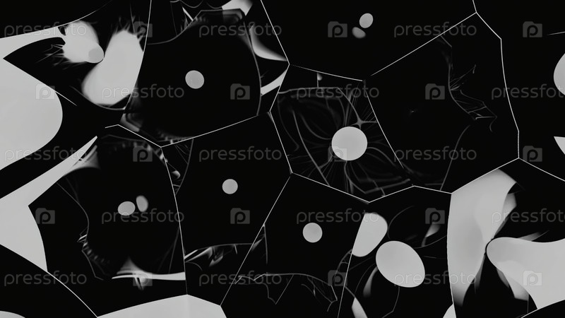Черный фон. Дизайн.Вид зеркал в анимации, которые меняют положение и на них видны большие белые 3D круги
