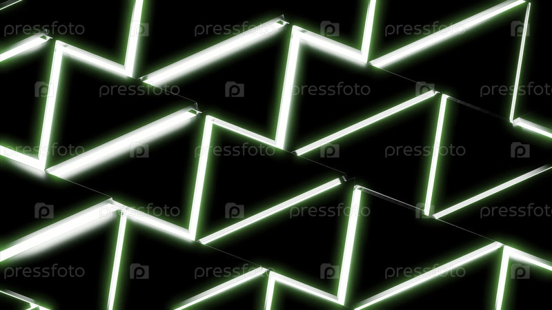 Абстрактные неоновые треугольные формы на черном фоне.Дизайн.Краткие линии, создающие узоры со многими треугольниками