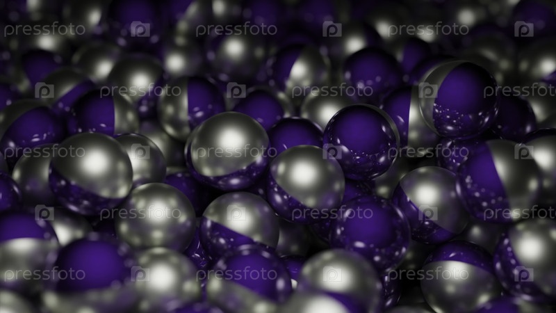 Цветные металлические шары передвигаются в потоке. Дизайн. Металлические 3D-шары движутся в большом количестве в потоке. Многие 3D-шар с металлической текстурой в движении