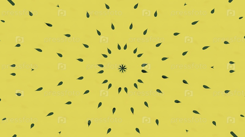 Милая мультфильмовая анимация маленьких зеленых листьев, вращающихся в калейдоскопе на желтом фоне