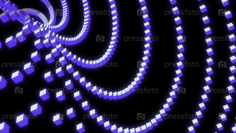 Черный фон.Дизайн.Ярко-синие раундели, которые сияют белыми огнями и линии движутся в одном направлении в анимации.Высокое качество 4k кадров