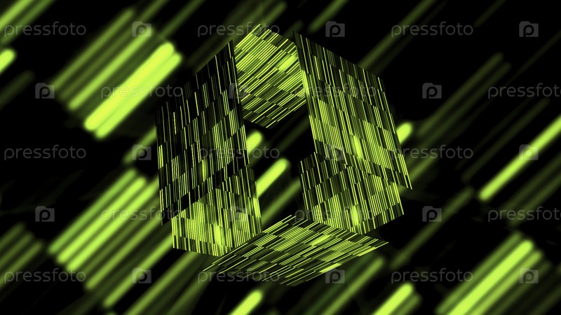 Ярко-зеленая абстракция.Движение.Квадрат в зеленом оттенке разных цветов поднимается и делится, а затем возвращается назад