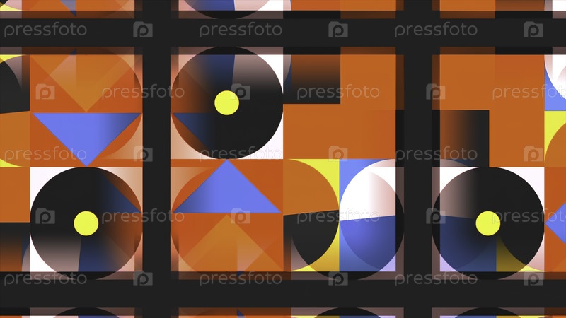 Анимация с изменяющимися геометрическими формами разных цветов. Движение. Перемещение и изменение геометрических узоров в стиле 80-х годов. Ретро-образный рисунок с красочными геометрическими формами
