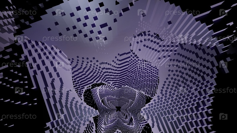Фиолетовый фон.Дизайн.Светлый замкнутый коридор из 3D-квадратов, который вращается и опускается в абстракцию