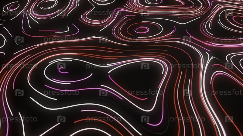 Топографический рисунок неоновых линий.Движение.Руководство движущихся неонных линий в стиле топографической карты.Овальные изогнутые линии медленно перемещаются, создавая орнамент