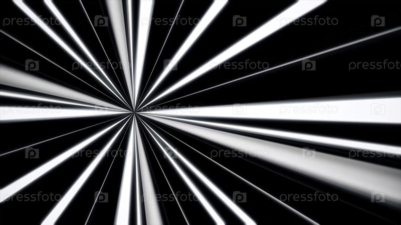 Стрелковый движущийся фон черно-белых полос, выходящих из одной точки как прожектор