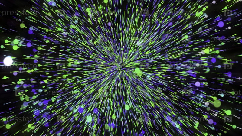 Абстрактные многоцветные линии распространяются по широкому кругу из одной точки.Движение.Концепция празднования, взрывающийся петард