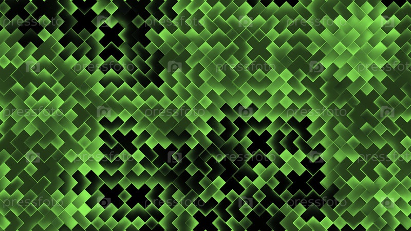Абстрактная зеленая квадратная графика движения. дизайн. красочные крестовые формы мигающий фон, неон светящийся мозаичный рисунок