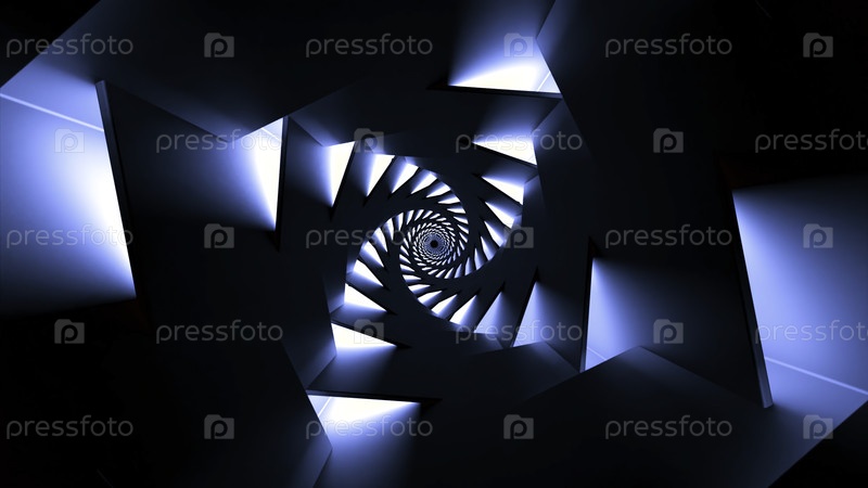 Гипнотический туннель из неоновых линий в спирали Дизайн 3D-тунел с полосами, расположенными в вращающейся спирали Неонные лампы в спирали