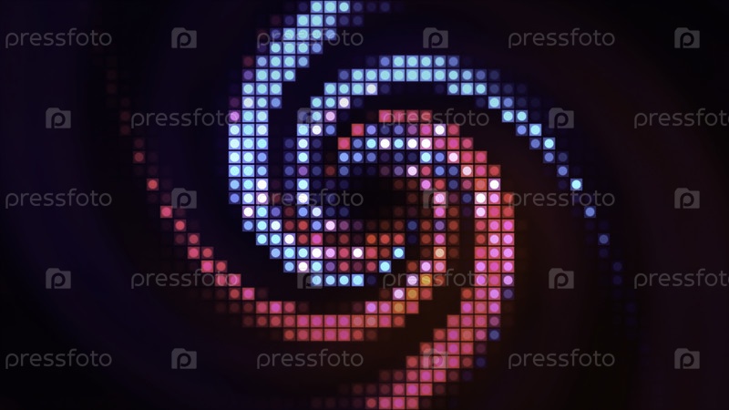 Вращающийся красочный пиксельный ретро-фон, бесшовная петля. Движение. Квадратный экран с распространением как торнадо по всем сторонам
