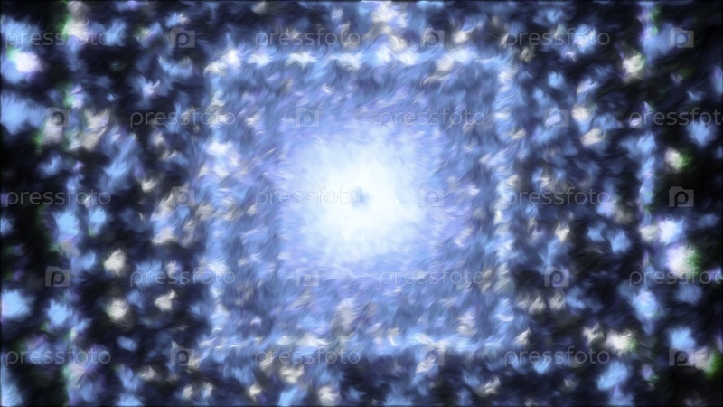 Синие квадратные рамы, создающие туннель.Движение.Темный коридор с ярким блеском, выполненный в компьютерной графике