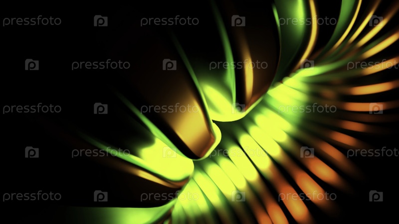 Вращающиеся зеленые и желтые линии. дизайн. черный фон с компьютерной графикой и движением