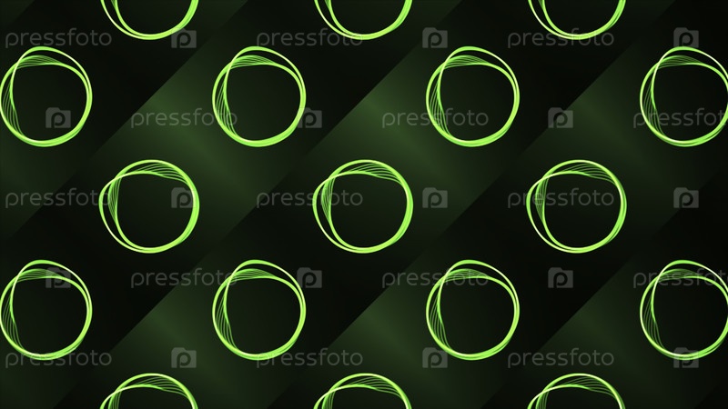 Зеленый фон.Движение.Светлые небольшие круги в анимации, которые начинают рисовать узоры из своих контуров
