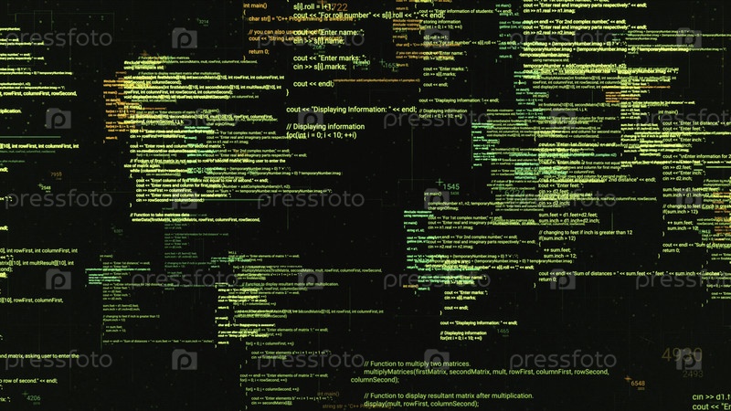 Абстрактный компьютерный код, работающий в виртуальном пространстве.Программирование кода с движущимися линиями, изолированными на черном фоне экрана, бесшовная петля