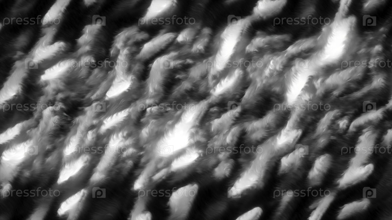 Абстрактные морщины и жидкие поверхности с блестящими линиями. Движение. Яркие подчеркивания в движущихся морщинках на черном фоне. Геометрические мерцающие подчеркивания света в жидких морщинках