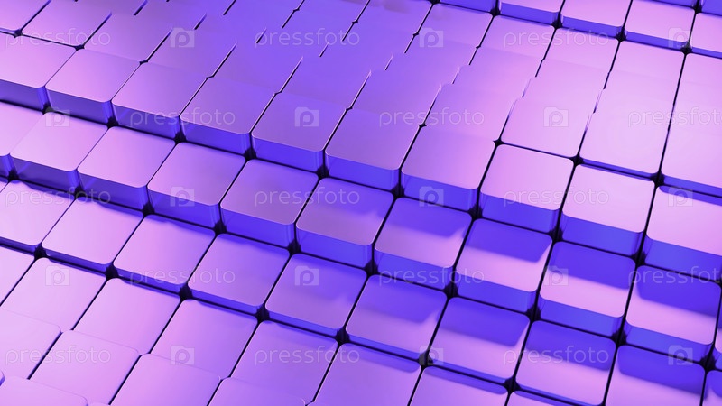 Розовые ряды размахивающих кубиков. Дизайн. Движение вверх и вниз 3D-блоков