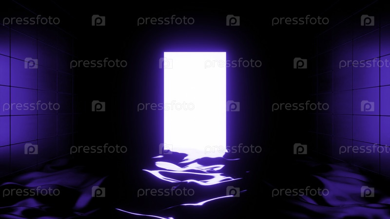 Подвал заполнен водой с ярким окном. Дизайн. Синее и оранжевое освещение с черной комнатой и водой и светлым пустым пространством, созданным в абстракции