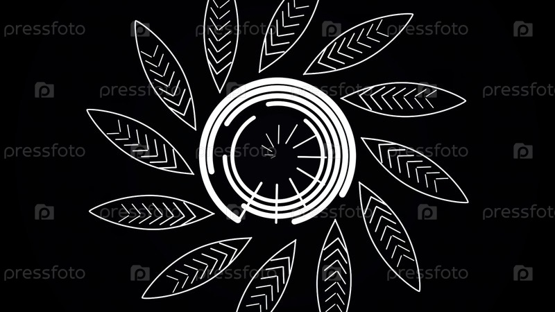 Абстрактные белые линии вращаются в форме цветка в большом круге на черном фоне