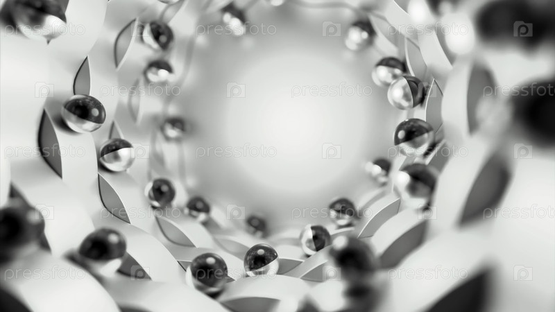 Вид на волшебный гипнотический коридор со светом в конце. Дизайн. Катающиеся цветные жемчужины внутри