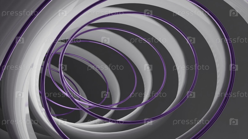 Психоделические овальные силуэты, создающие эффект изгиба коридора. Дизайн. Летающий внутри туннеля многих летающих овалов