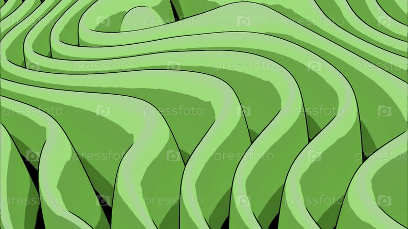 Зеленые плавные складки в стиле мультфильмов. Дизайн. Бесконечная изгибающаяся и размахивающая ткань