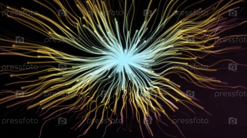 Абстрактные частицы света взрываются из центрального ядра, излучая красочные энергетические волны