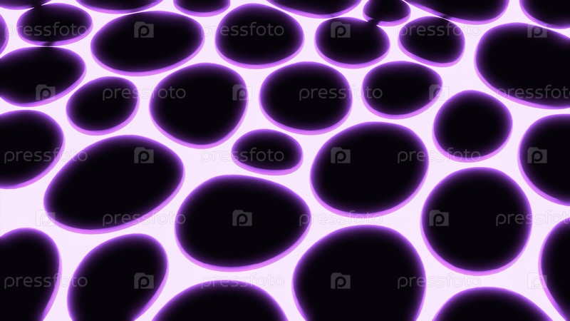 Неоновая поверхность с черными кругами. Дизайн. Яркая неонная поверхность с черными дырами. Черные дыры на неоновой поверхности в абстрактном фоне