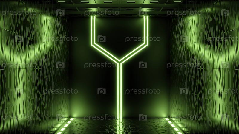 Закрытие светлой комнаты. Дизайн.Зелёная и фиолетовая комната с ярким белым освещением в анимации, которая закрыта тремя дверями. Высокое качество 4k кадров