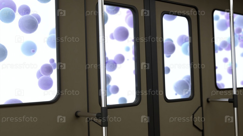 Смотреть на абстрактные пузыри, поднимающиеся в воздухе воздух через окна поезда. Дизайн. Концепция детского уникального мировоззрения