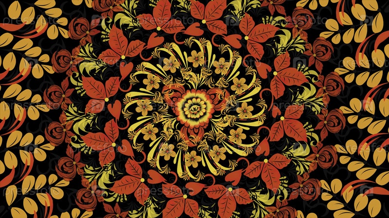Посудочная живопись Хохлома Россия ярко-красных цветов и ягод на черном фоне