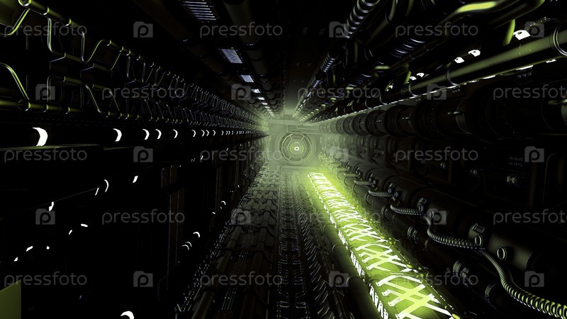 Полет в туннель космического корабля, научно-фантастический коридор космических кораблей. Движение. Футуристическая технология абстрактный интерьер космического корабля