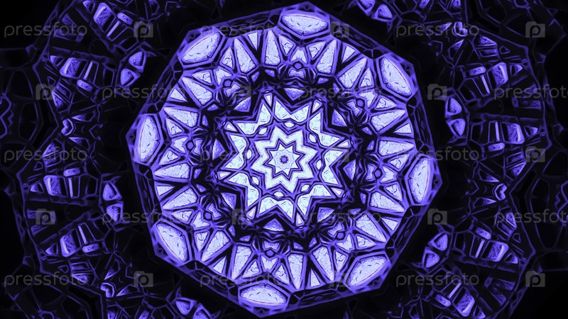 Пульсирующий гипнотический паттерн мандалы с неоновым светом. Дизайн. Кибер-мандала пульсирует с гипнотическим паттерном с неоновым светом. Красивая анимация неонной мандалы с пулсациями