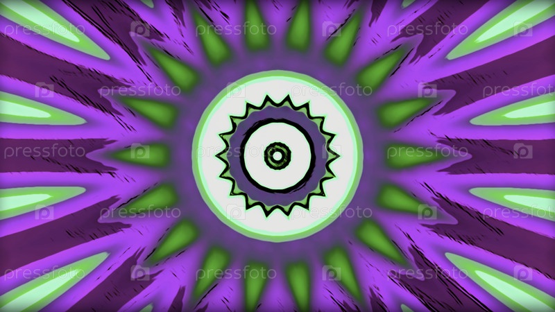 Мультипликационная анимация с калейдоскопическими формами солнца.Движение.Распространение солнечных лучей с изменением цветов