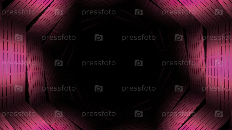 Абстрактный розовый шестиугольный тоннель с темным центром.Дизайн.Летать внутри научного гипнотического коридора