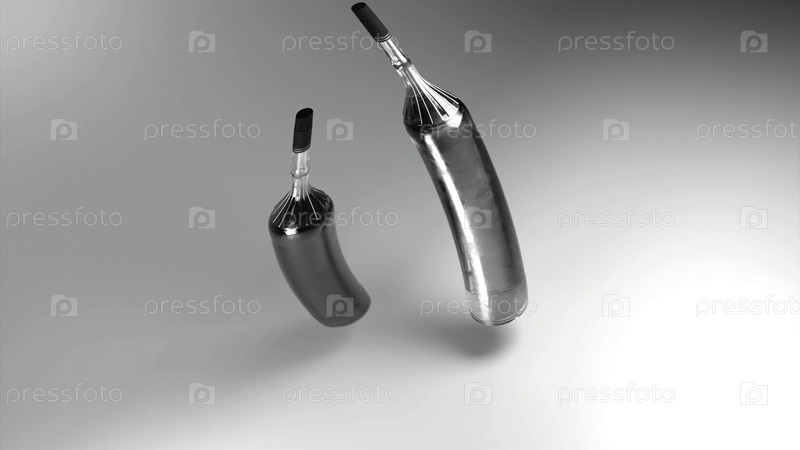 Абстрактные вращающиеся бутылки белого и красного вина, изолированные на розовом фоне. Дизайн. Концепция алкоголизма или зависимости от алкоголя
