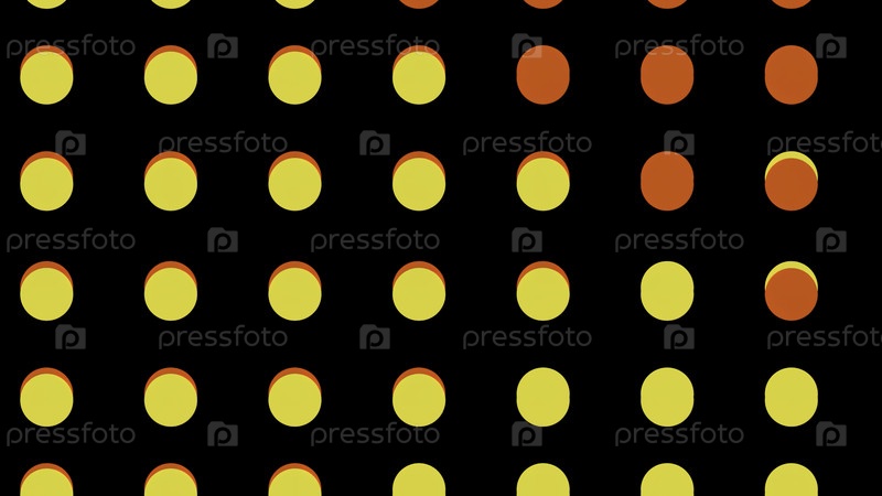 Скачущие цветные круги создают тошноту. Дизайн. Небольшие сферы, быстро движущиеся вверх и вниз по вертикальным рядам на черном фоне