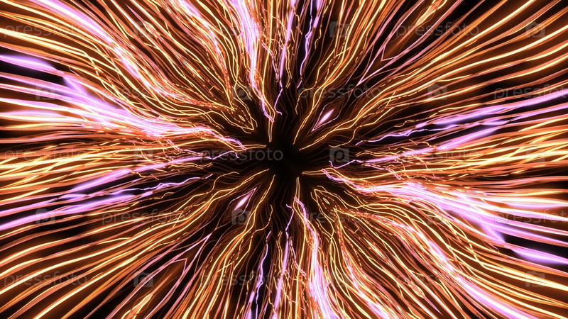 Абстрактное энергетическое ядро и распространение электрических лучей. Дизайн. Красочные заряды электроэнергии вокруг центра