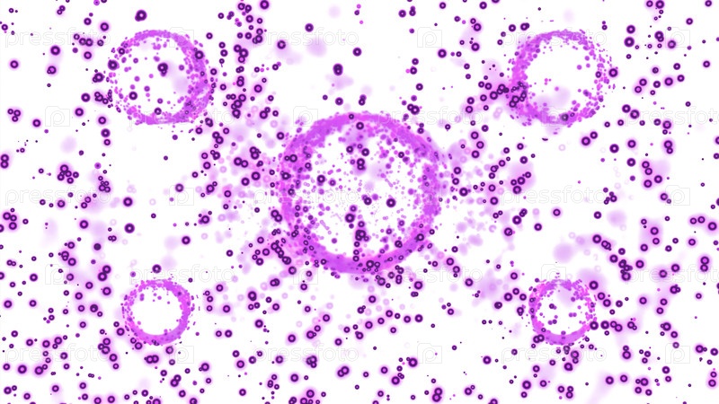 Кольца с поднимающимися точками вокруг них. Дизайн. Красочные круглые формы по всему экрану