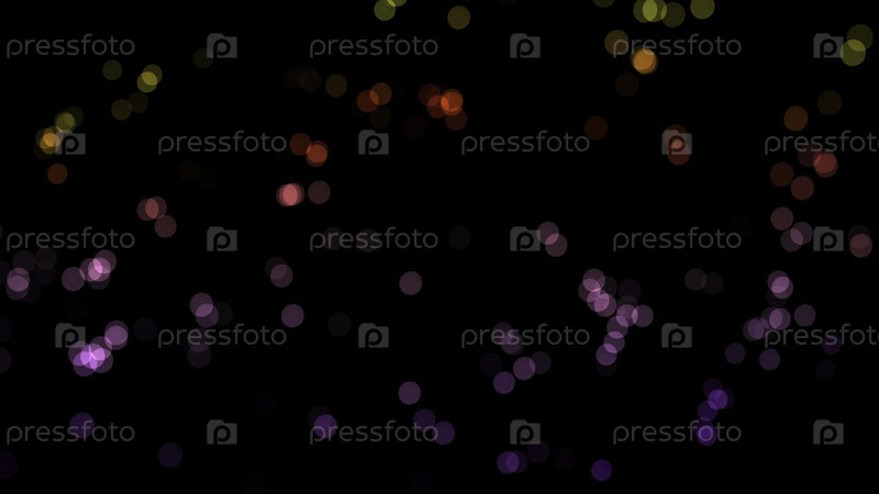 Сверкающие цветные круги, блестящие частицы, мерцающие на черном фоне. Размытые мелкие точки мигают, бесшовная петля