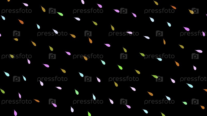 Фон вращающихся красочных листьев на черном фоне.Анимация.Простые формы цветных дублируемых листьев, вращающиеся на черном фоне