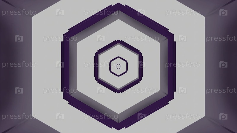 Гипнотический полет внутри шестиугольного тоннеля из белых и зеленых полос. Дизайн. Бесконечный коридор геометрических фигур