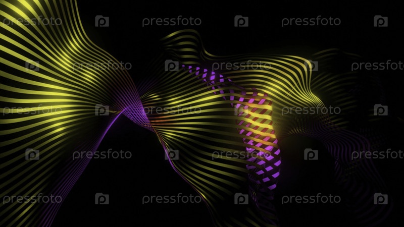 Волнистые полоски ткани перемещаются в пространстве. Дизайн. Красивая изогнутая полоска движется волнами от линий. Блестящая красивая группа волнистых линий
