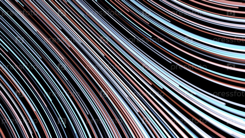 Абстрактный фон движущихся многоцветных неоновых линий на черном фоне. анимация. изогнутая цветная линия, быстро перемещающаяся в потоке