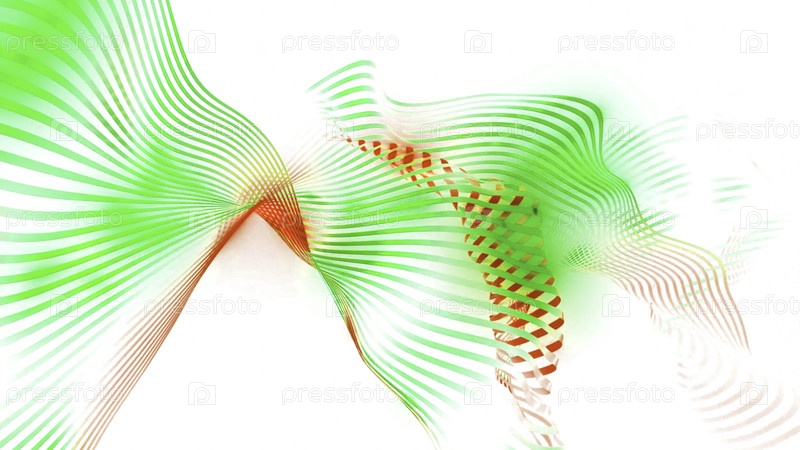 Анимация полос, движущихся волнами в стиле ткани.Движение. Движущаяся 3D-анимация с полосатой тканью на белом фоне. Красивые волнистые и красочные полосы перемещаются волнами в пространстве
