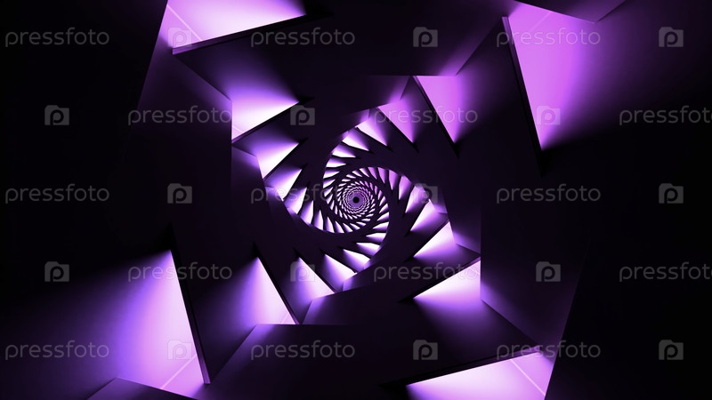 Фиолетовый тоннель.Дизайн.Ясная абстракция, состоящая из треугольников и других геометрических форм, которая движется изнутри