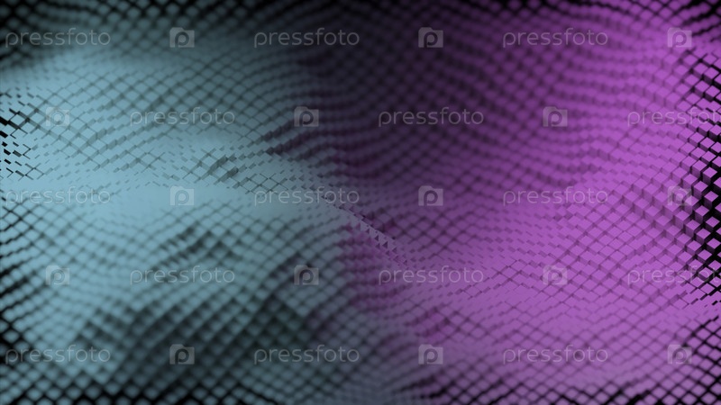 Фантастический синий и розовый кубический фон движения. Дизайн. Цифровая 3D решетка, вращающаяся